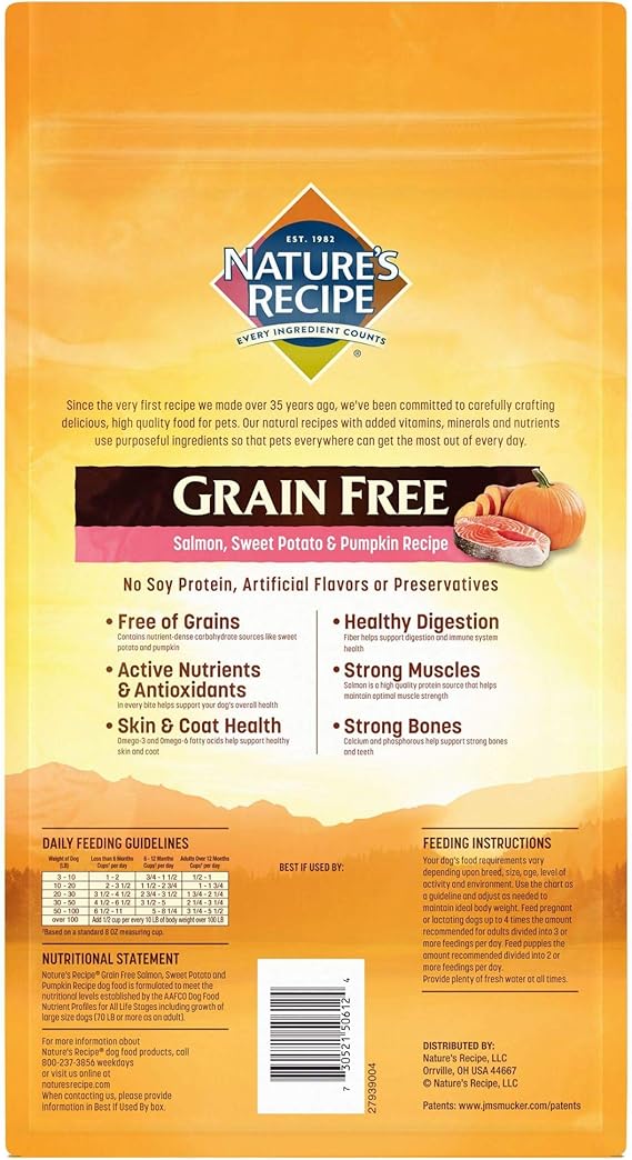 Amazon Com Nature S Recipe Grain Free Easy To Digest Salmon Sweet Potato And Pumpkin Recipe Dry Dog Food 4 Pound Pet Supplies